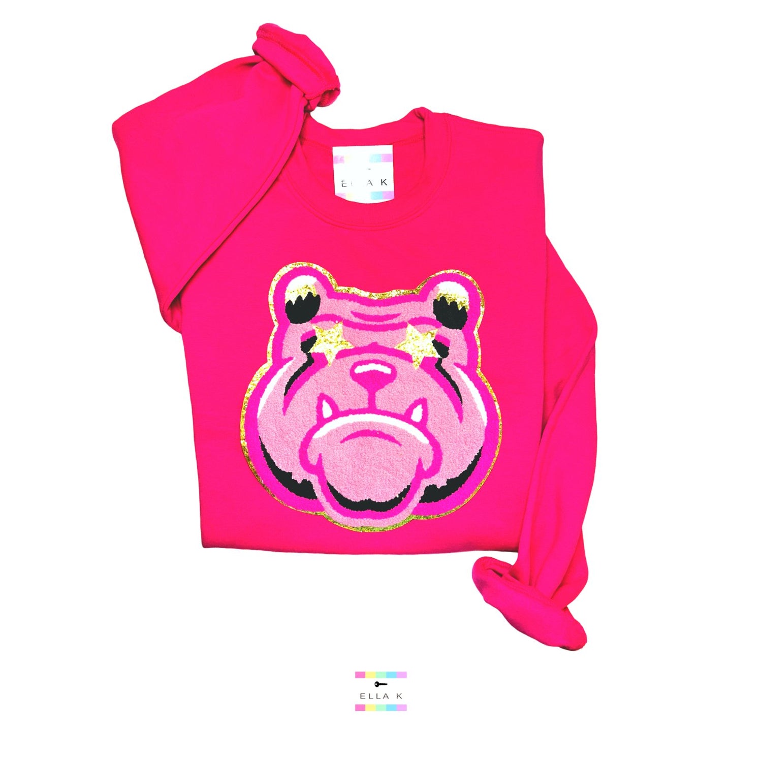 Rhinestone & Pearl Embellished Coquette Bow Cropped Pink Pullover