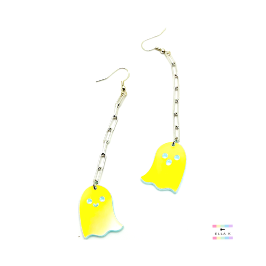 Holographic Ghost Silver Paperclip Earrings