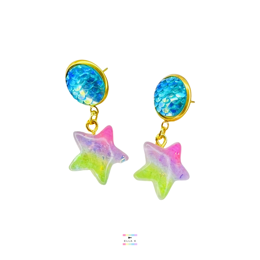 Opal Aquarium Starfish Mermaid Scale Earrings