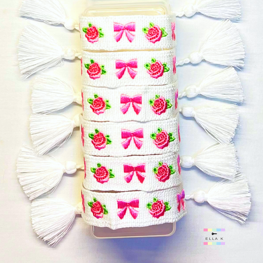 Roses & Coquette Bow Woven Tassel Bracelet
