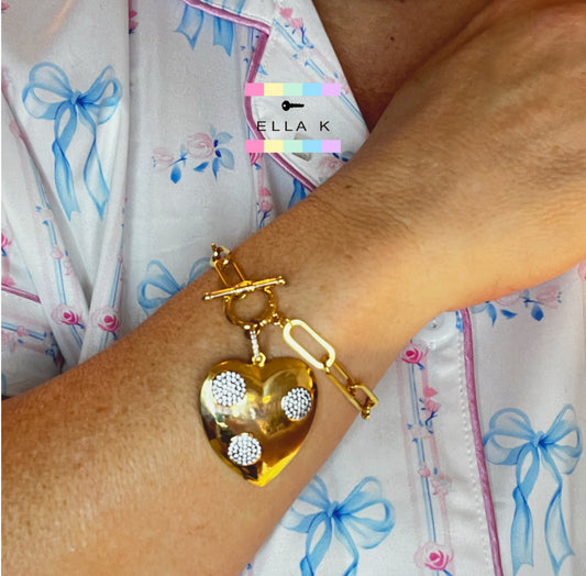 Gold Plated Micro Pave Chunky Heart Bracelet