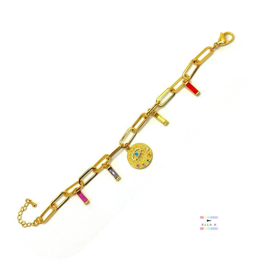 XL Evil Eye Coin Charm Paperclip Bracelet