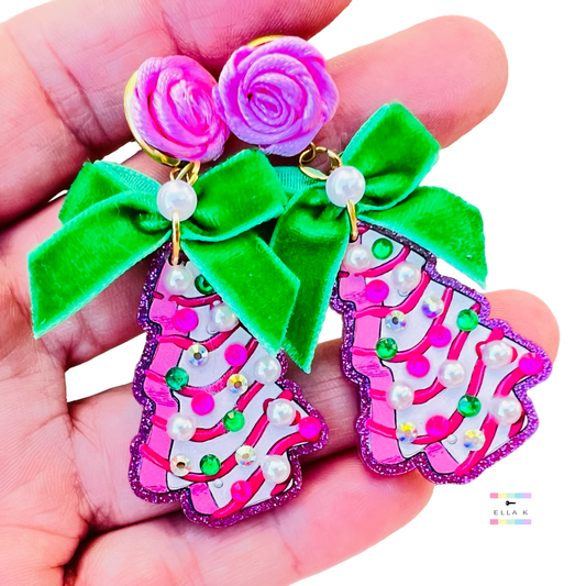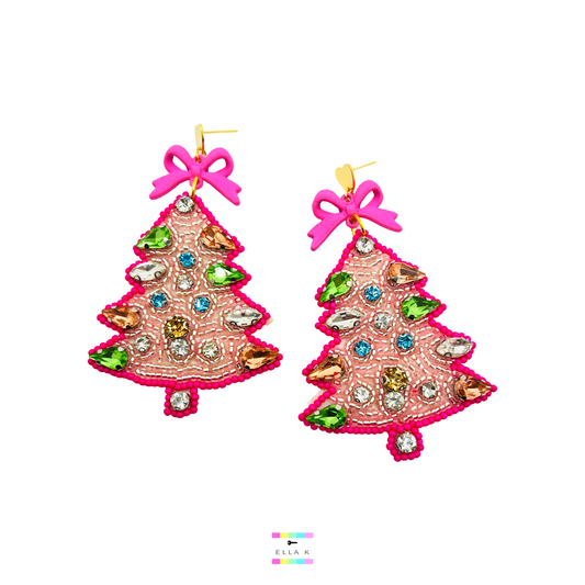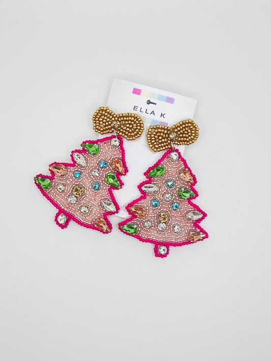 Pink Christmas Tree Earrings