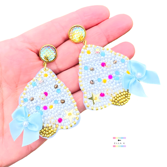 Mermaids By The Sea Coquette Bow Christmas Tree Earrings