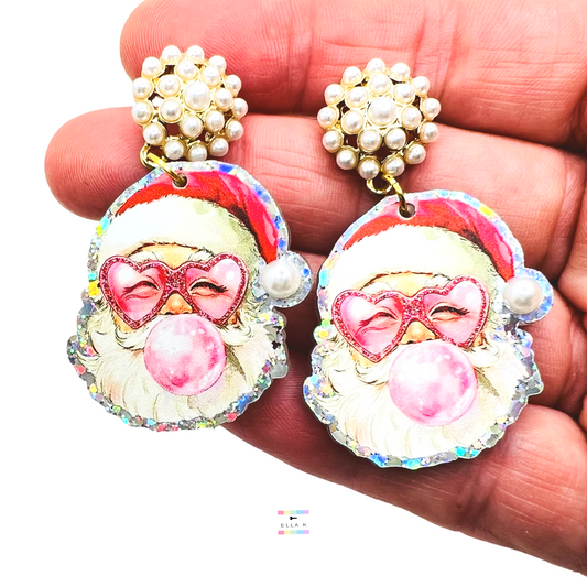 Bubble Gum Santa Christmas Earrings