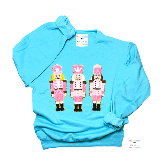 Powder Pink Chenille Nutcracker Christmas Pullover