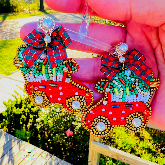 Bubble Gum Santa Coquette Bow Christmas Earrings