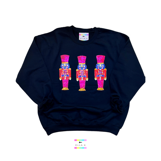 Pink Chenille Christmas Soldier Trio Sweatshirt - Green