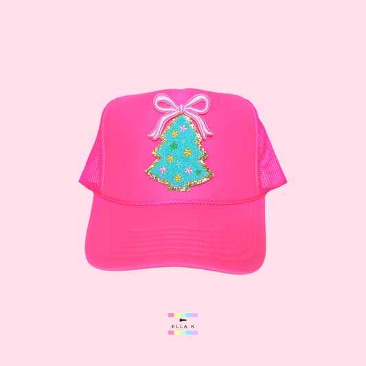 Beaded Christmas Tree Gingham Coquette Bow Trucker Hat