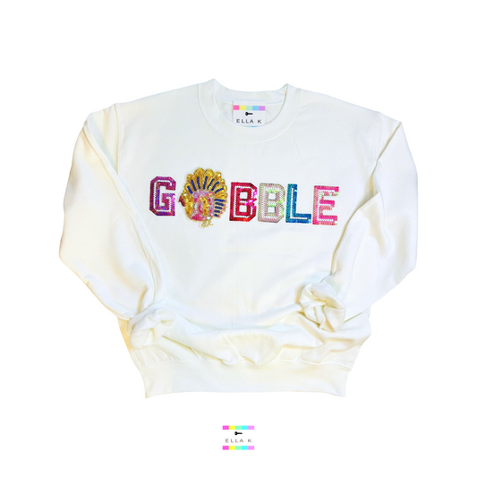 Preppy Pink Chenille Santa Sweatshirt - Scuba Blue