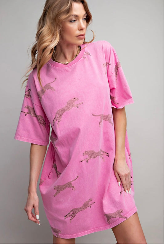 Easel Mineral Washed T-Shirt Dress Barbie Pink
