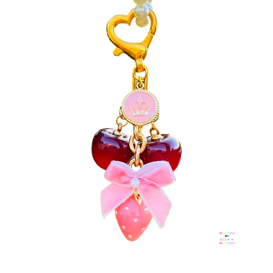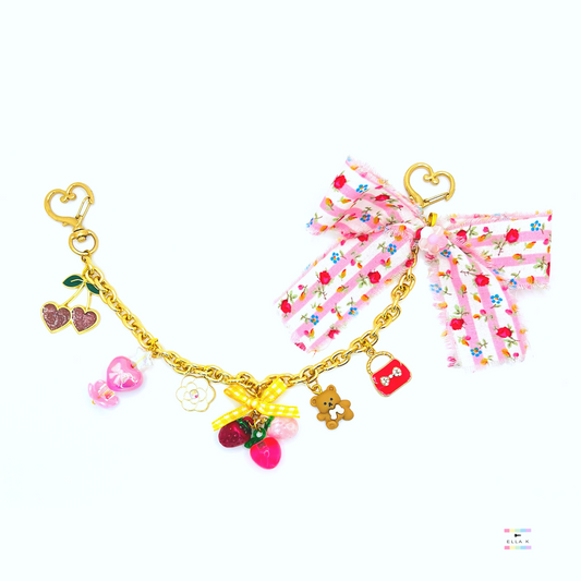 Pretty In Pink Floral Fruit Coquette Bow Bag Charm