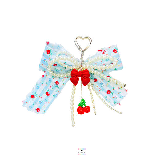 Faux Pearl Floral Rose Coquette Bow Cherry Bag Charm