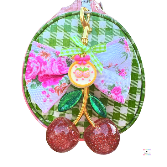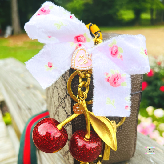 Handmade Floral Coquette Bow XL Cherry Bag Charm