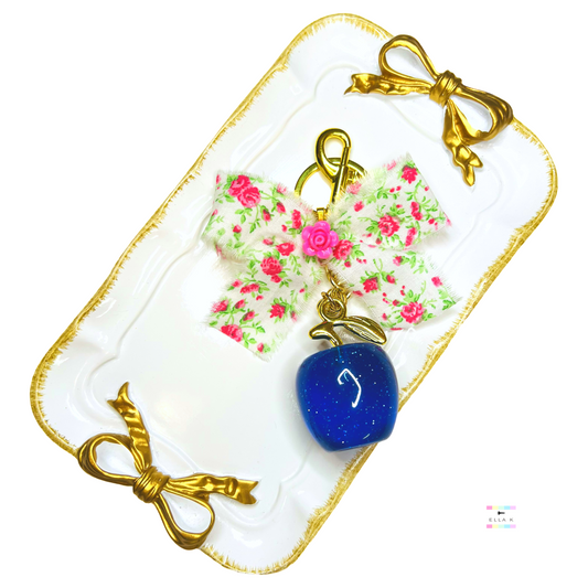 Pink Floral Rose Coquette Bow Blue Apple Bag Charm