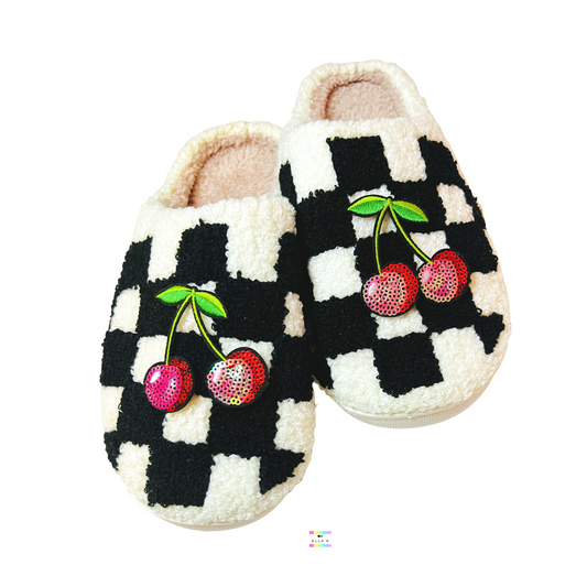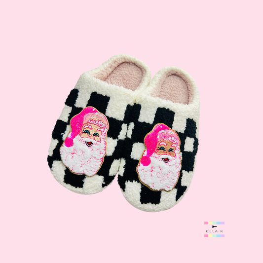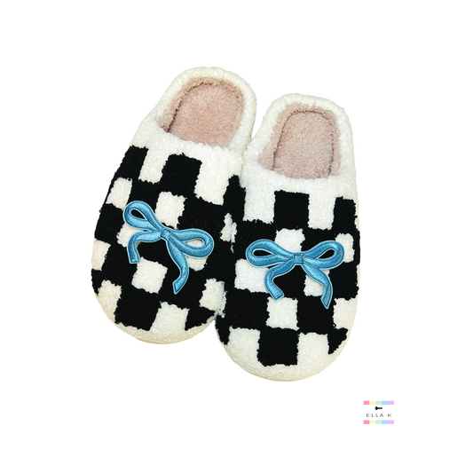 Christmas Tree Patch Coquette Bow Checkered House Slippers