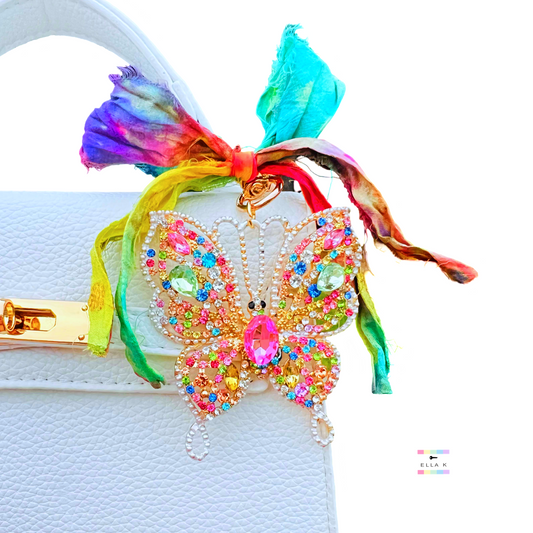 Watercolor Rainbow Rhinestone Butterfly Bag Charm