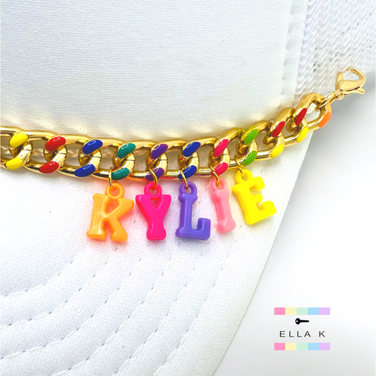 Custom Name Rainbow Enamel Gold Trucker Hat Chain