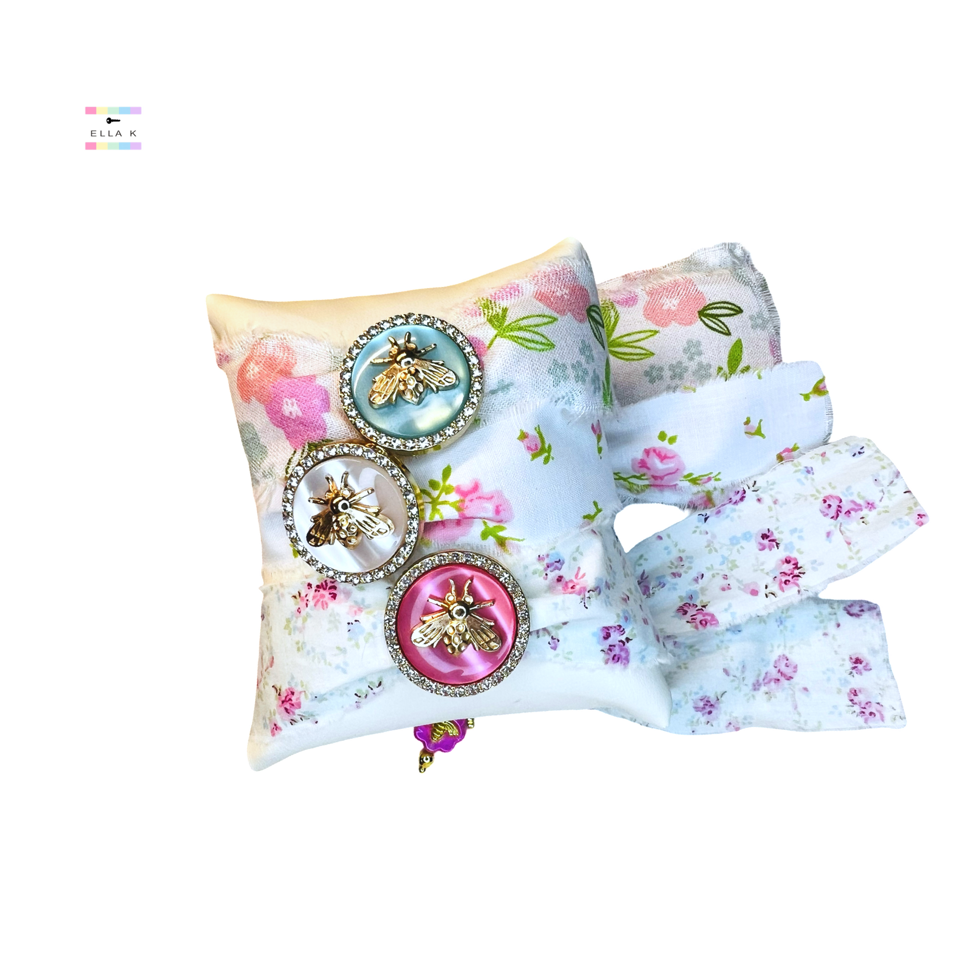 Please leave your desired floral fabric & tiny bee charm color choice in the notes section. If no selection id made, Ella K will match it according to selected centerpiece