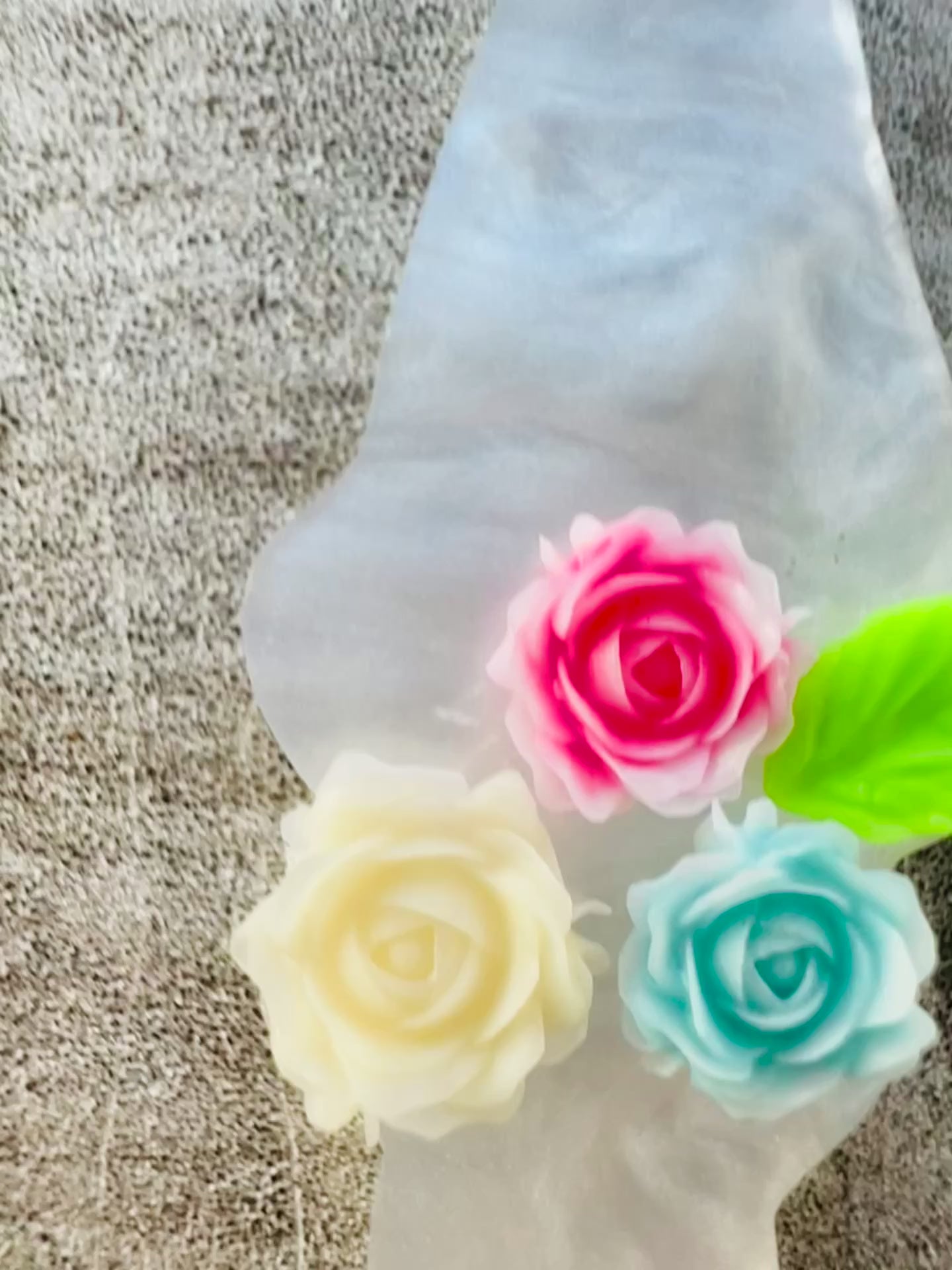 - Pearlized resin dangle ghost 1.5" with blooming 3-D pastel roses